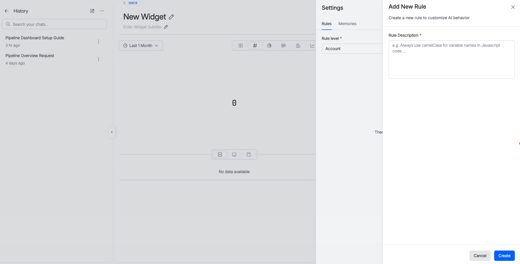 - Select Create a widget using AI. The AI dialog opens.