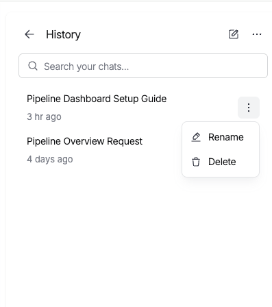 - Resume: Select a conversation to reopen it and continue where you left off.